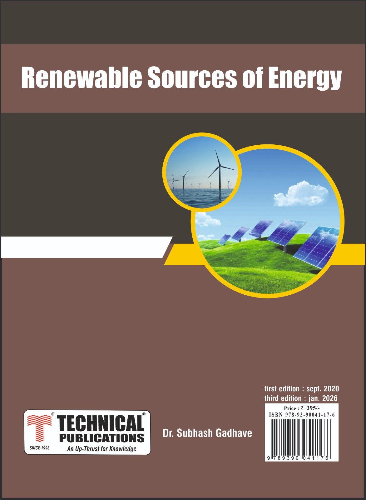 UNIT-I Introduction World Energy Use - Reserves of Energy Resources - Environmental Aspects of Energy Utilisation - Renewable Energy Scenario in Tamil nadu, India and around the World - Potentials - Achievements / Applications - Economics of renewable energy systems. (Chapter - 1) UNIT-II Solar Energy Solar Radiation - Measurements of Solar Radiation - Flat Plate and Concentrating Collectors - Solar direct Thermal Applications - Solar thermal Power Generation - Fundamentals of Solar Photo Voltaic Conversion - Solar Cells - Solar PV Power Generation - Solar PV Applications. (Chapter - 2) UNIT-III Wind Energy Wind Data and Energy Estimation - Types of Wind Energy Systems - Performance - Site Selection - Details of Wind Turbine Generator - Safety and Environmental Aspects. (Chapter - 3) UNIT-IV Bio Energy Biomass direct combustion - Biomass gasifiers - Biogas plants - Digesters - Ethanol production - Bio diesel - Cogeneration - Biomass Applications. (Chapter - 4) UNIT-V Other Renewable Energy Sources Tidal energy - Wave Energy - Open and Closed OTEC Cycles - Small Hydro-Geothermal Energy - Hydrogen and Storage - Fuel Cell Systems - Hybrid Systems. (Chapter - 5)